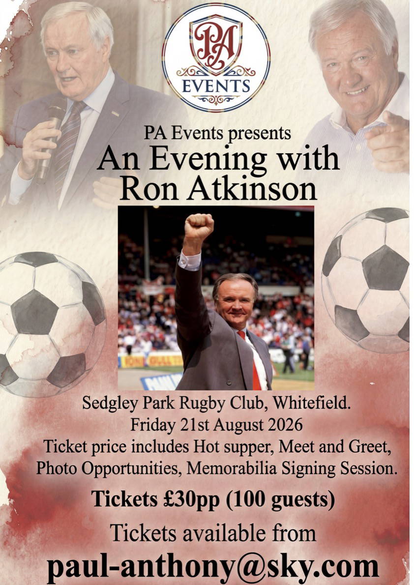 We’re excited to be hosting a fantastic night at Sedgley Park Rugby Club as PA Events present: An Evening with Ron Atkinson, a true football legend!